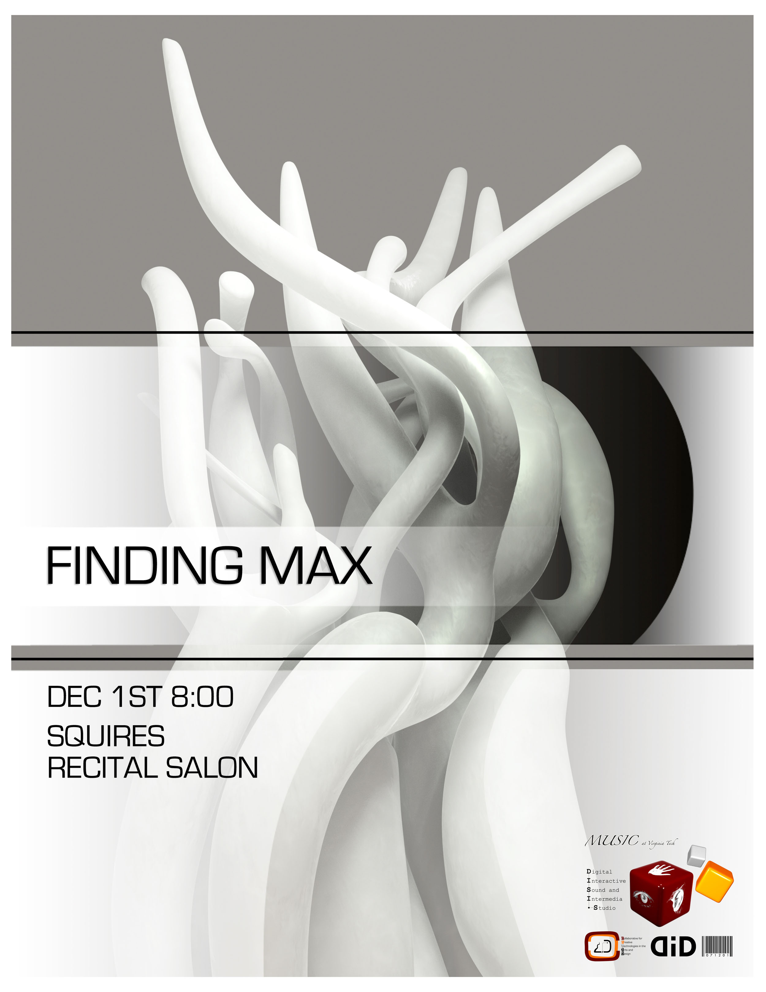 --Wassily Kandinsky DISIS presents "Finding Max" Digital iD Multimedia Event - 8:00 pm, Saturday, December 1st, 2007 - Squires Recital Salon VT Music Department's Digital Interactive Sound and Intermedia Studio (DISIS) in conjunction with Collaborative for Creative Technologies in the Arts and Design (CCTAD) hosts its second multimedia event. Featuring students from Music, CS, Communication, Interdisciplinary Studies, and Engineering, DISIS founder and director Dr. Ivica Ico Bukvic, Prof. Dane Webster (Art), and a special guest performer Dr. Tracy Cowden (Music), this truly multidisciplinary production will offer an evening of performances that draw upon the synergy among contemporary technology, music tradition, multimedia arts, and interactivity. |